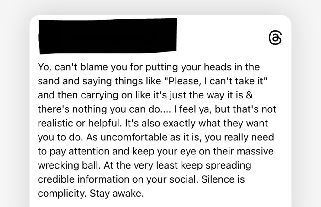 White, male Threads user questions the pride of Black Americans. Under this administration? Wigga, PLEASE!